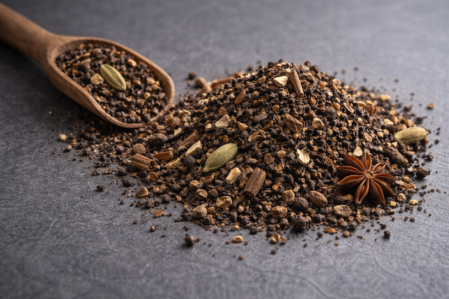 Spiced black tea served with milk and sweetness.